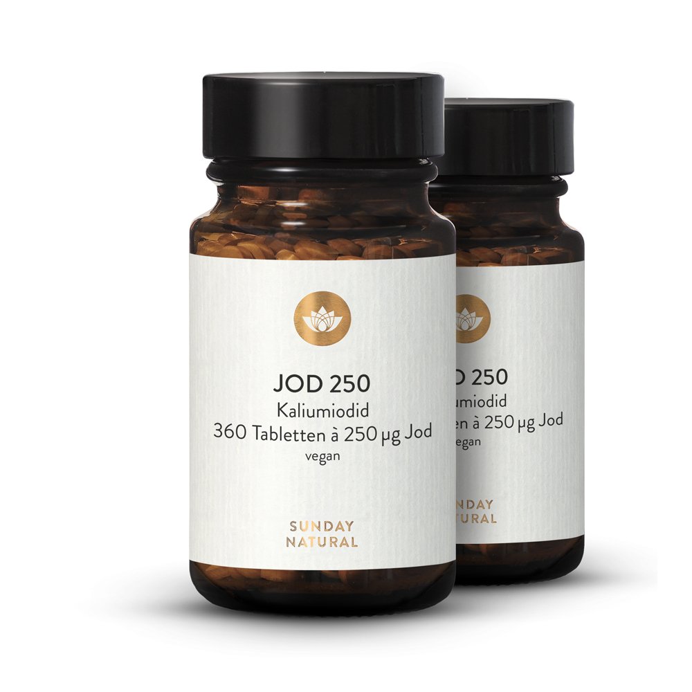 Iodine 250µg Potassium Iodide Pharmaceutical Quality 2x360 Tablets Vegan Sunday Natural